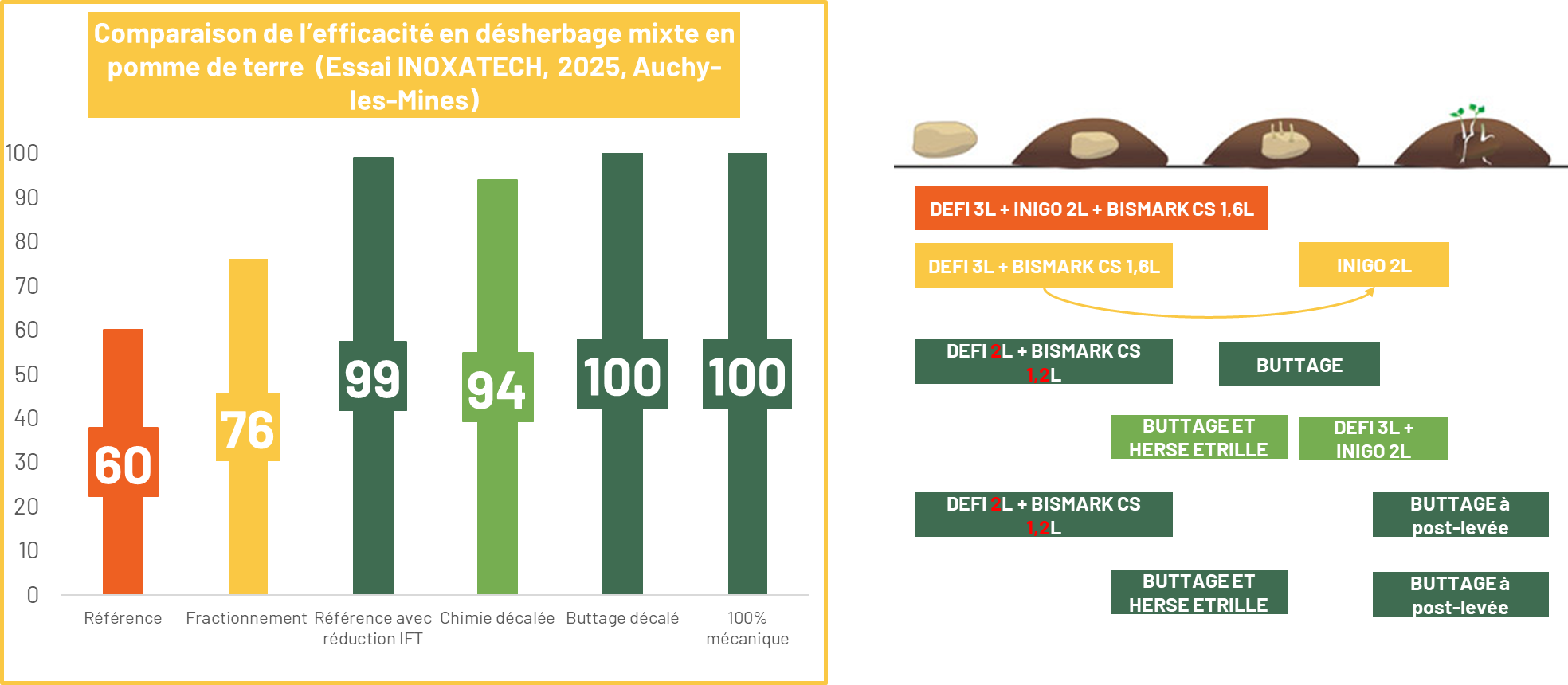2025 marque un tournant : pour la première fois, nous devons conduire nos programmes de désherbage sans métribuzine (ARCADE, BASTILLE, SENCORIAL...).