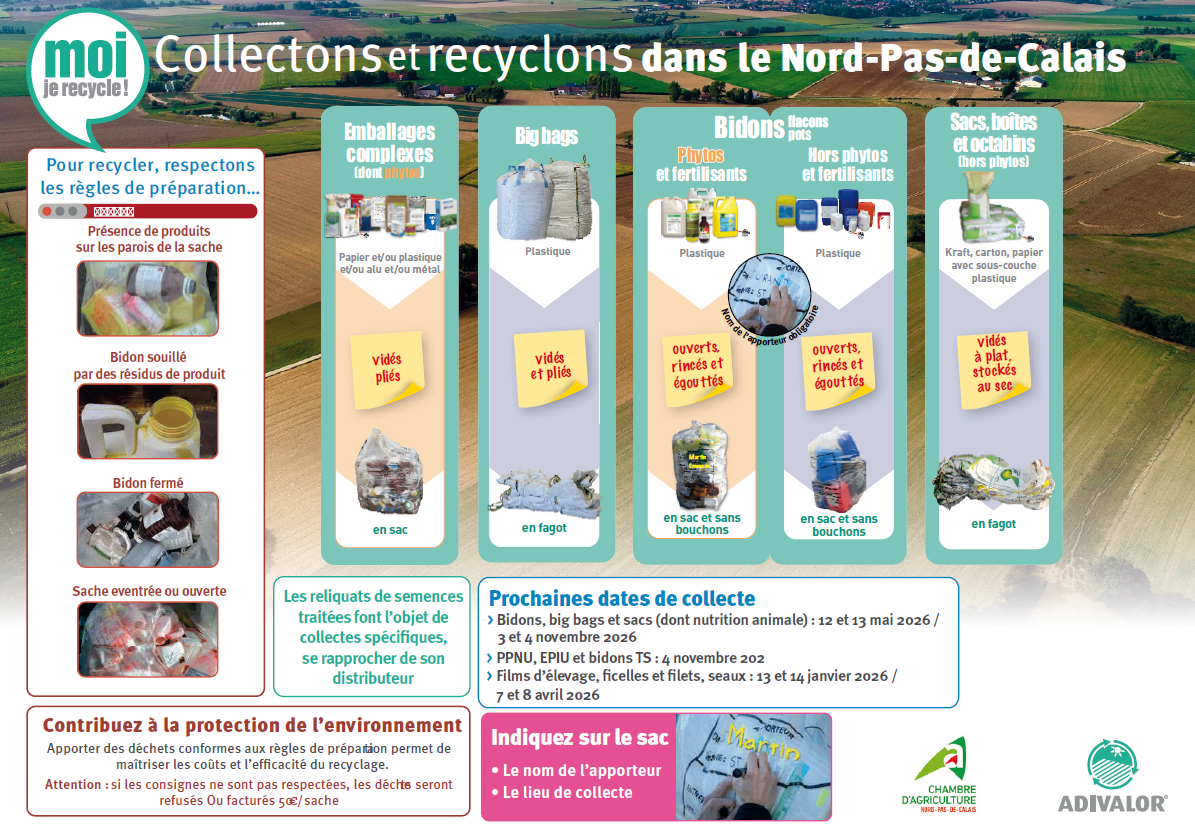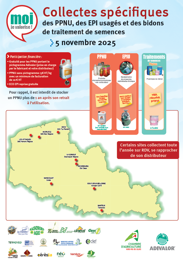 Les 4 et 5 novembre auront lieu les prochaines collectes ADIVALOR pour les sites collecteurs de bidons vides, sacs papiers, big-bags, fûts, PPNU et EPI usagés. Un bon moyen pour valoriser les déchets agricoles en toute sécurité.